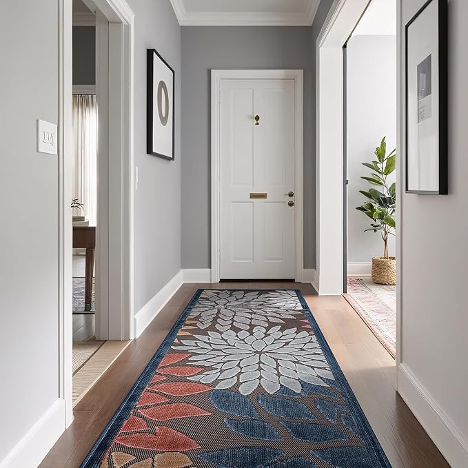 Beverly Rug Outdoor Runner Rug 2x7 Modern Floral Tropical Area Rugs for Indoor and Outdoor Patio Easy to Clean Non Shedding Living Room Porch Garden Washable Outside Carpet (2 x 7 Brown)