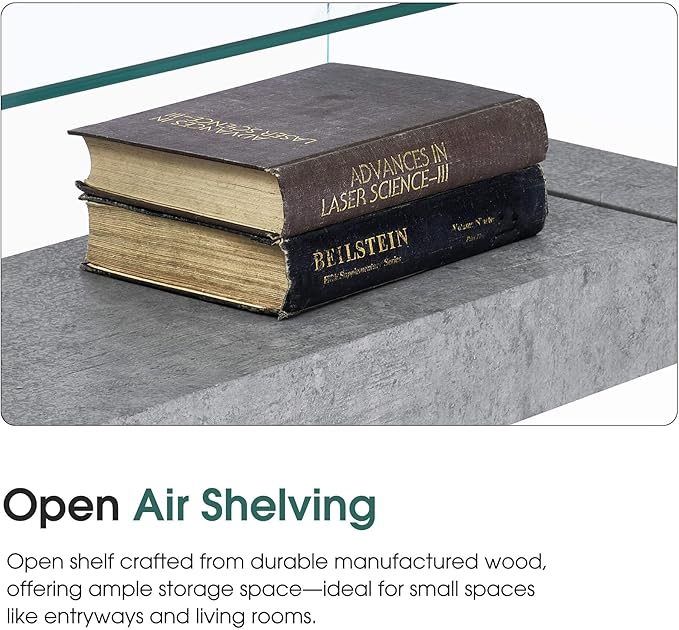 - Modern Glass Console Table: 8mm thick clear tempered glass tabletop with a smooth, beveled edge provides a perfect platform for framed photos or a stylish pair of lamps. Meanwhile, the two-tempered glass leg below gives your home an on-trend look. The console table can hold a weight capacity of 100 LBS
