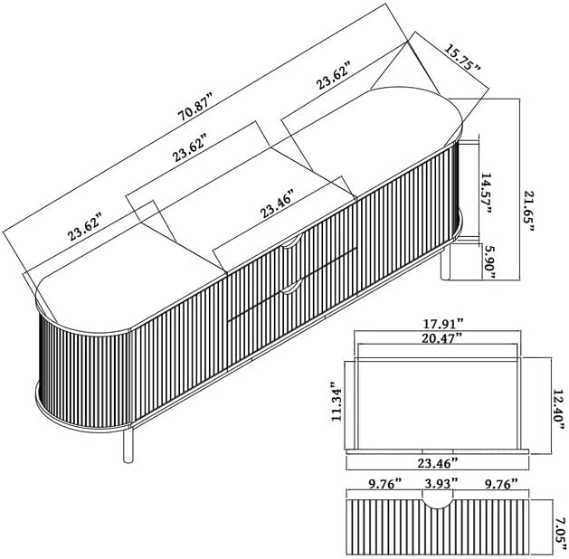 - Elegant Fluted Design: This TV stand showcases a captivating slatted roller shutter sliding door design, perfectly paired with a sleek curved profile. The elegant tambour doors not only enhance the aesthetic appeal but also allow for seamless access to your media devices while adding a modern touch to any living space.