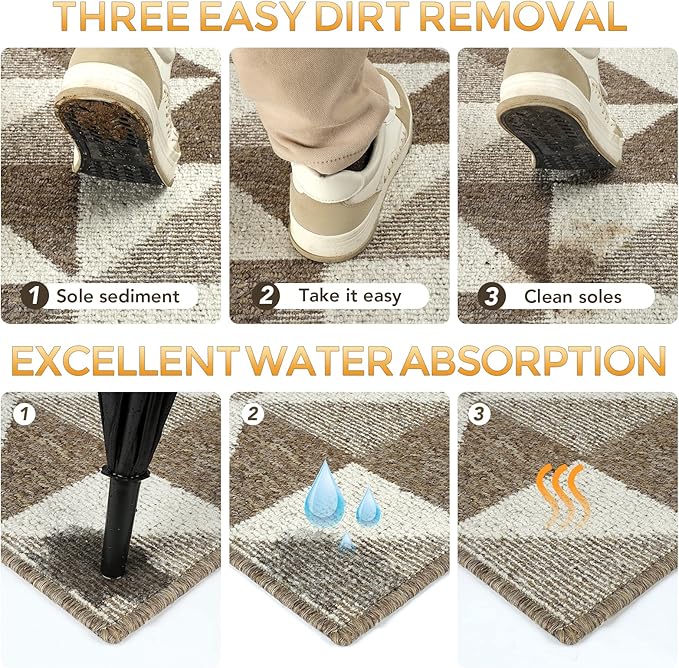 • LOW PROFILE & FASHION : Our indoor doormat measures 24" x 35" x 0.4", low profile design so doors won't get stuck. They are woven in more stylish colors and patterns to match any décor, making your home more cute and sweet.