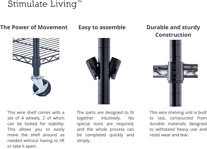 - ★EASY ASSEMBLY★ Our Stimulate Living Wire Shelving is designed with simplicity in mind, making assembly quick and hassle-free. You can easily set it up in no time and start using it immediately.