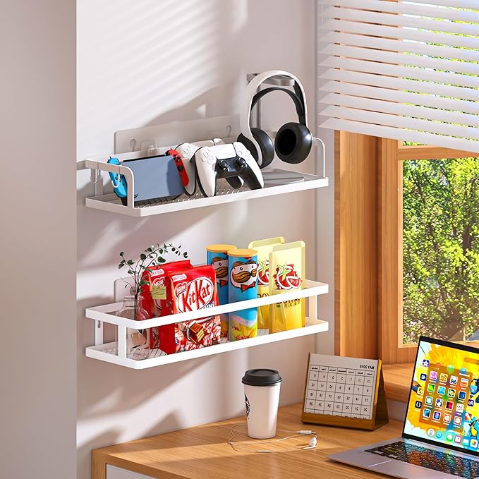 PUSDON Metal Wall Hanging Basket 2 Packs DIY Suitable for Multiple Scenes - Large White Hollowout