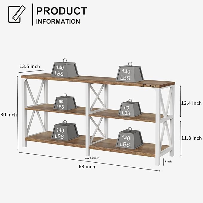 LVB Industrial Entryway Table, Farmhouse Rustic Console Table Behind Couch, Long Metal Sofa Table with Storage Shelf, Modern Hallway Table for Living Room Bedroom,White and Rustic Oak,63 inch