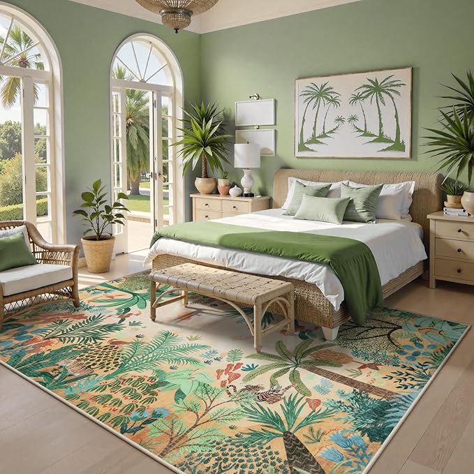 - 【Day and Night Collection】: LIVEBOX Day and Night Collection Rug captures the sky's transformation from dawn to midnight. With vibrant hues of four color, this rug brings the jungle's enchanting beauty and the sky's magical shifts into your space.