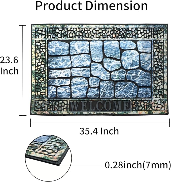 - 【Heavy Duty Door Mat】The door mat for outside measures 23.6 x 35.4 inches with a thickness of 0.28 inches. Made from quality and durable rubber, it ensures long-lasting durability and performs well in all weather conditions, making it suitable for year-round outdoor use.