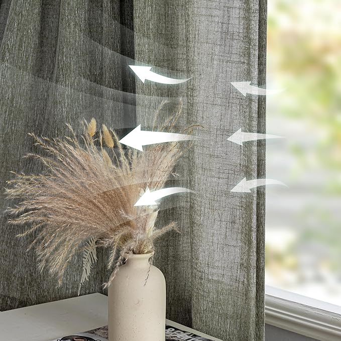 MYSKY HOME Living Room Curtains 84 Inches Long Semi Sheer Light Filtering Privacy Drapes Linen Look Textured Boho Home Decor, Backdrop Curtain for Parties, 100" x 84", Olive Green, 1 Panel