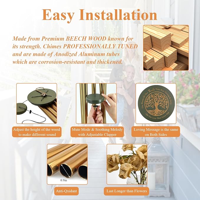 - Premium Sound Quality for Emotional Healing--Professionally tuned 5-metal tubes deliver deep, soothing tones that resonate like a calming melody. Thickened aluminum tubes and a dense wood striker ensure long-lasting, rich sound—ideal for creating a serene atmosphere in gardens or yards.