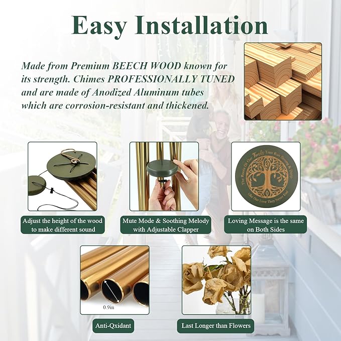 - Premium Sound Quality for Emotional Healing--Professionally tuned 5-metal tubes deliver deep, soothing tones that resonate like a calming melody. Thickened aluminum tubes and a dense wood striker ensure long-lasting, rich sound—ideal for creating a serene atmosphere in gardens or yards.