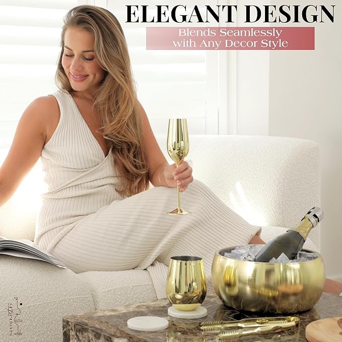 Gusto Nostro 4.1L Insulated Ice Bucket with Lid and Tongs, Double Wall Stainless Steel Ice Bucket Large, BPA Free Ice Bucket for Cocktail Bar, Keeps Champagne, Wine, Beer Chill for Parties (Gold)