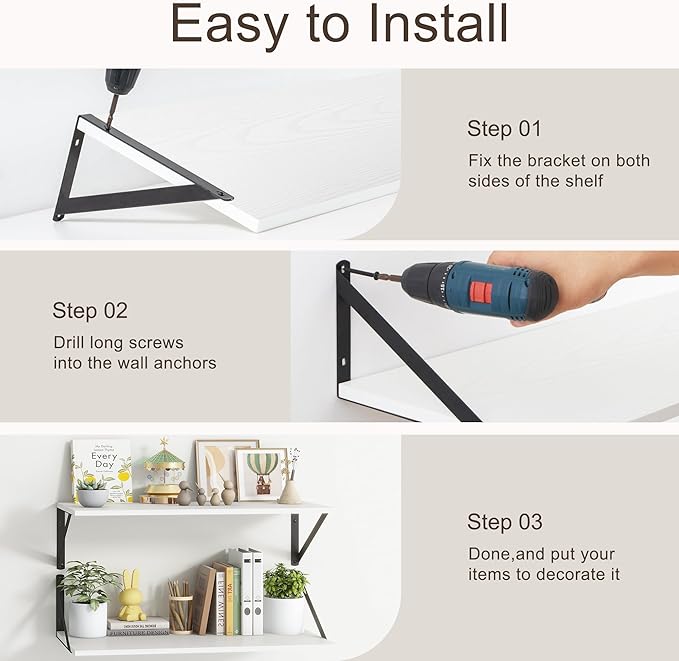 - 【Easy to Assemble】These shelves come with all mounting hardware and instructions. You can install them in less than 15 minutes. If you have any questions about our products, please feel free to contact us and we will try our best to solve them for you!