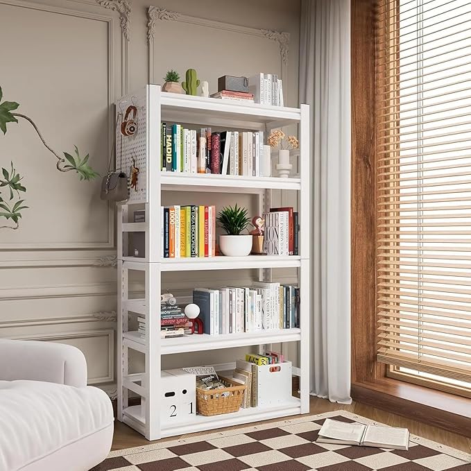- 【Thoughtful Designs】Designed with your convenience in mind, this white metal book shelf for bedroom includes built-in bookend strips to keep your books and items neatly in place. Additionally, the anti-tip feature ensures safety by preventing the 5 shelf bookcases from tipping over, making it ideal for home