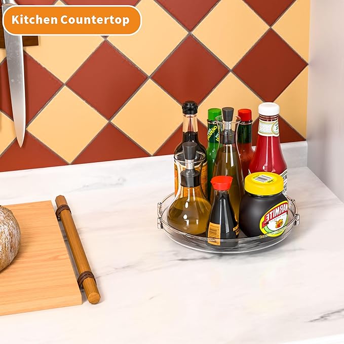 - 【Sturdy & Durable】 This plastic lazy susan organizer is made to last and complement any kitchen decor. Not only good for fridge organizers and storage, it is also great for lazy susan turntable for cabinet,turntable organizer for kitchen,cabinet lazy susan,rotating kitchen storage rack,spice spinner for cabinet,rotating tray for refrigerator organizing,refrigerator shelf organizer