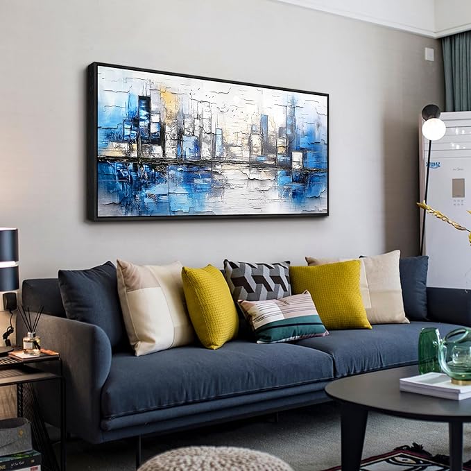 - Framed Wall Art Size: 24x48 inches (60x120 cm) Blue Abstract,Makes a great focal point for a living room, bedroom, office, or any space that needs natural beauty