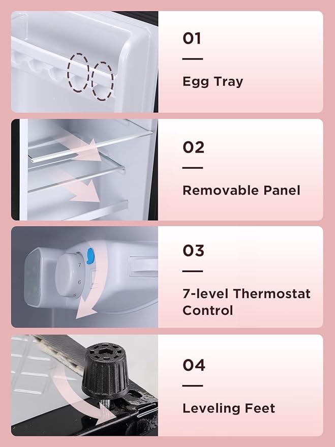 - 【7 Temperature Settings】 This mini refrigerator comes with 7 levels of temperature adjustment, can be adjusted to 5 to 10℃ in the refrigerator compartment / 0 to -18℃ in the freezer compartment, perfect for quickly freezing ice, ice cream, and other foods.