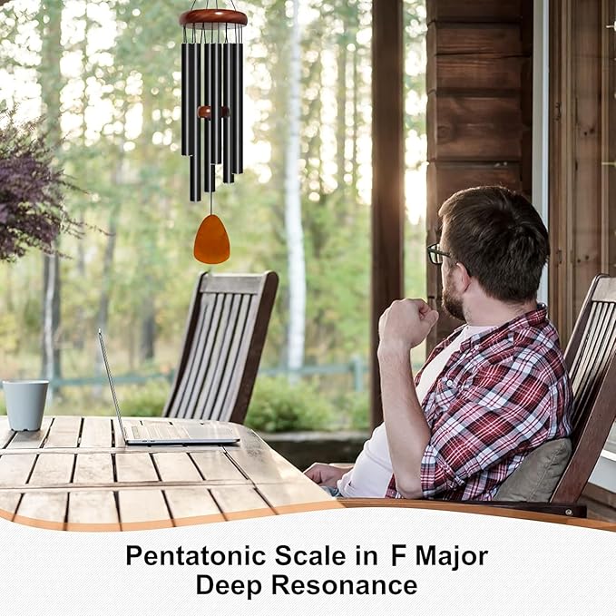 - Deep Tone Wind Chimes for Outside: This wind chime has a total length of 29 inches and uses a 6-length combination of 11.1/10.5/9.9/9.1/8.6/7.9. The scale is manually adjusted to F major, creating a relaxing and enjoyable melody. The diameter of the tube is 0.75 inches, making the sound more persistent and long-lasting. The wall thickness of the tube is 0.06 inches, and the sound is neither hollow nor sharp. When a gentle breeze blows by, wind chimes will play a relaxing music for you.