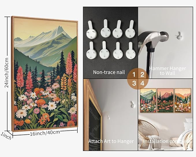 - Stunning Floral and Mountain Fusion: Elevate your home decor with the Tinonedraw Colorful Wildflower Blossom Framed Canvas Wall Art Set, showcasing a breathtaking blend of vibrant wildflowers and majestic blue ridge mountains that breathe life into any room.