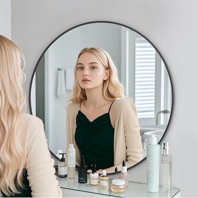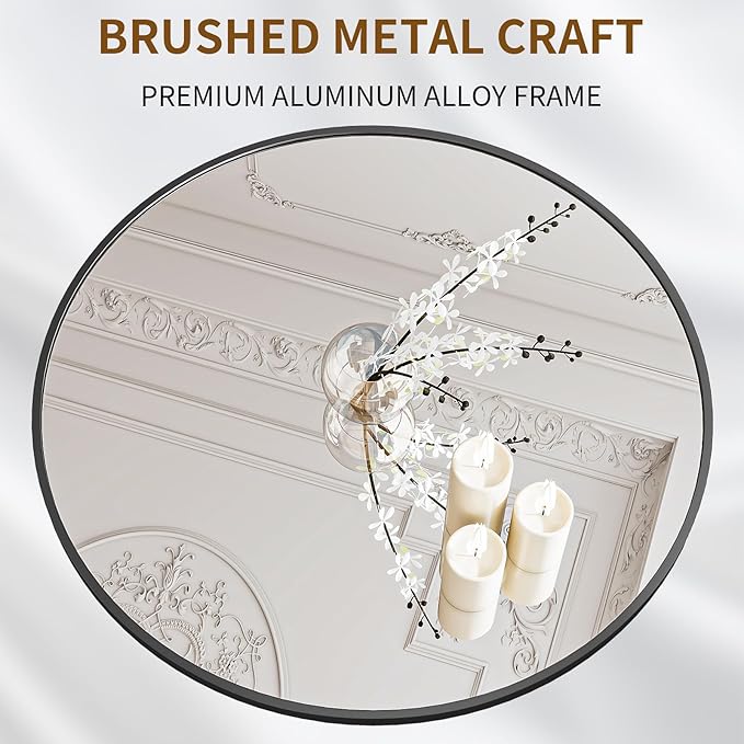 - Modern Brushed Frame Design: 40-inch black circle mirror is crafted of an aluminum alloy metal sleek frame, making it ideal for bathroom mirror, entrance mirror, vanity mirror, living room mirror