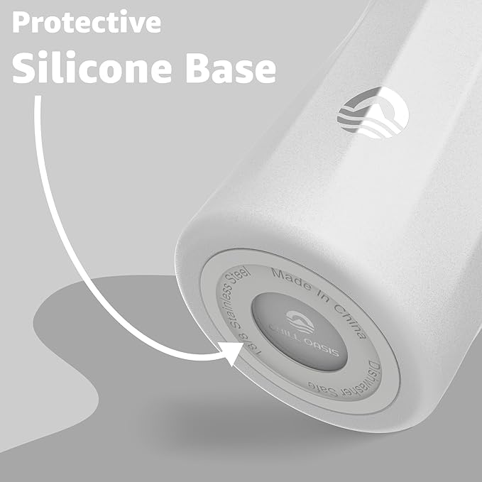 Chill Oasis Water Bottle | Compatible With Popular Flavor Cartridges | BPA Free, Leak Proof, Double-Walled Vacuum Insulated Stainless Steel, and Dishwasher Safe | Cold for 24 Hours (White, 32oz)
