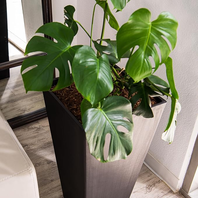 - LARGE AND VERSATILE: The large size of these tapered square planters (measuring 15.2 in. x 15.2 in. wide and 30 in. tall and weight of 20.4 pounds, each), makes this set of two same sized planters ideal for accommodating bigger plants and adding a bold and impressive presence to your indoor or outdoor space.