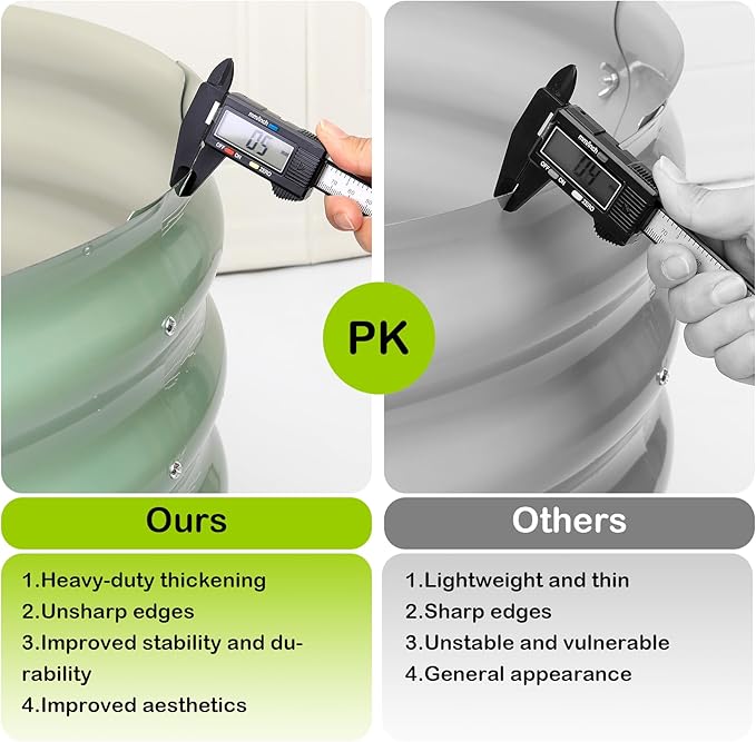 - 🌳 Unmatched Stability: Crafted with 0.5mm thick overlapping galvanized panels, reaching up to 1.8mm at the seams, our raised garden bed provides excellent strength and stability. The integrated screw fastening edge and unique oval form ensure it remains solid and secure, even when fully planted.