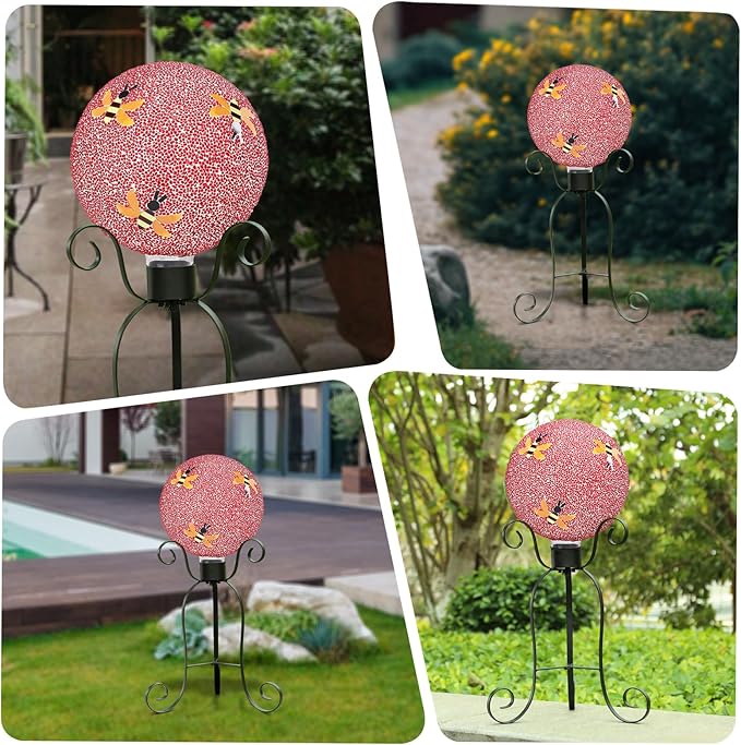 VCUTEKA Gazing Ball, 8" Glass Gazing Balls Sphere for Garden Lawn Outdoor Ornament Yard Decorative, Bee