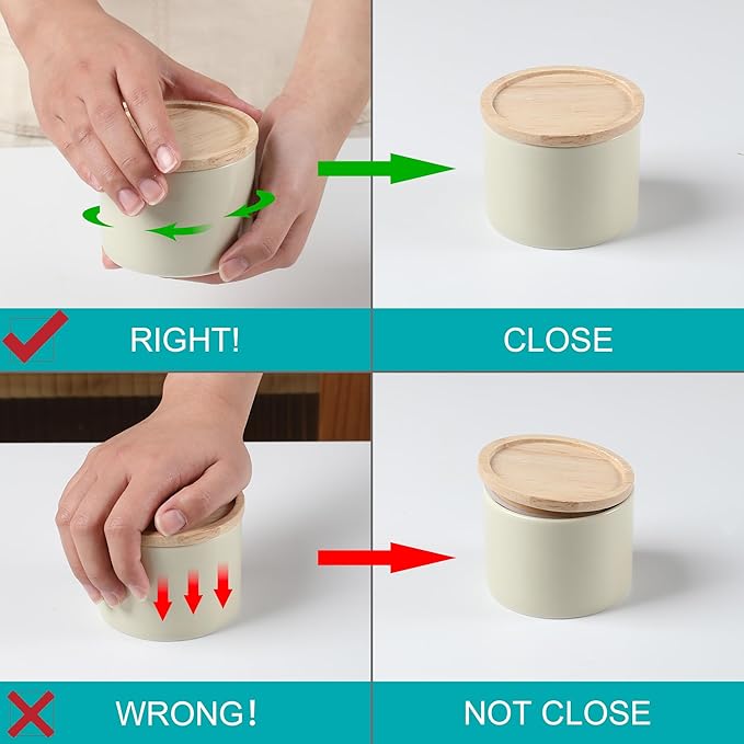 - PROFESSIONAL MATERIAL - Sweejar food storage containers are made of food grade, smooth porcelain. The containers with wooden lid and rubber seal to ensure a true airtight seal and lightproof. They are good for maintaining food and seasoning fresh.
