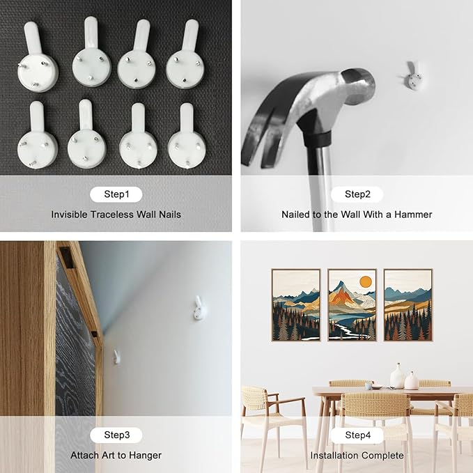 - Easy to Hang: Each of these three colorful mountain art prints pieces measures 16x24inches. It comes with all the necessary accessories so it's simple and easy to install. Simply choose where you want to decorate, make sure it's level and aligned the way you want it, and then nail it down with non-marking nails.