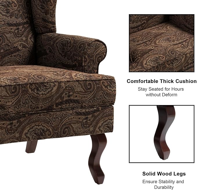 - Fit for Small Space Wingback Chairs: This lounge chair sized at 42"H * 32"W * 32"D easily fits for small spaces and can be placed in the office, bedroom, or living room