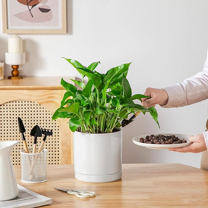 - 【Stylish & Easy to Clean 】Crafted from premium natural ceramic clay and high-fired for exceptional strength, these planters for indoor plants, resist cracking, peeling, and color fading. Easy-clean surfaces simplify maintenance. they blend timeless elegance with rugged durability, making them a practical yet sophisticated upgrade for any space—and a thoughtful gift for plant lovers seeking lasting quality.