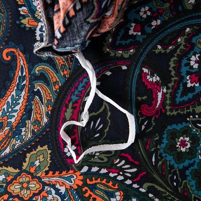 ABREEZE Luxury Vintage Black Duvet Cover Sets Damask Paisley Bedding Set Retro 100% Brushed Cotton Zipper Closure Bedding Collection Full Size