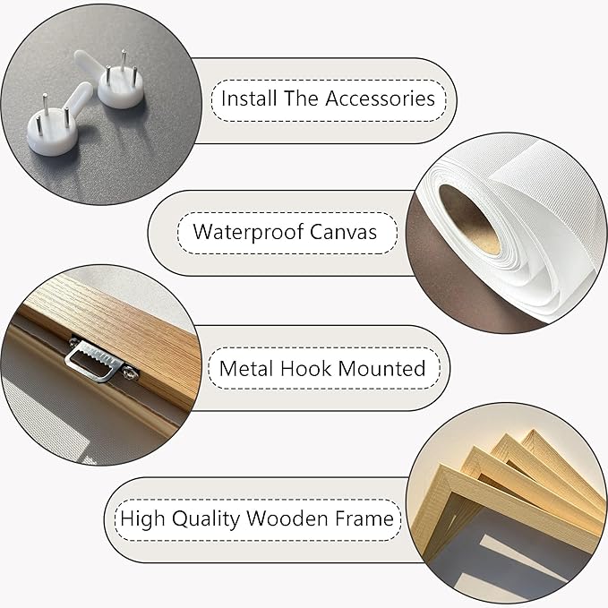 - Scenery Wall Decor:Each piece comes pre-stretched on a solid wooden frame with pre-installed D-ring hooks and hanging accessories, making it easy to hang and instantly transform your space.