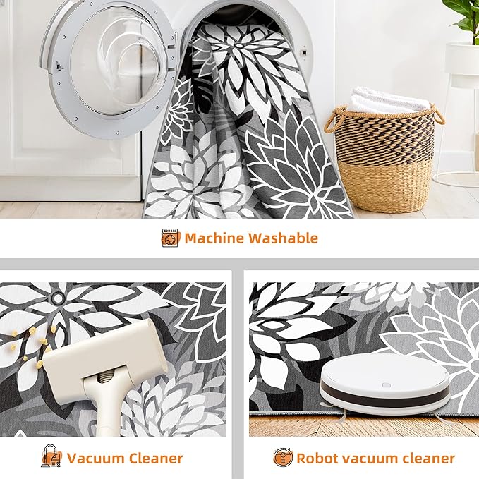 - Floral Pattern Design: Brighten up your outdoor space with our stunning floral pattern washable rug, perfect for patios, decks, or gardens, adding a touch of elegance and charm to any setting.