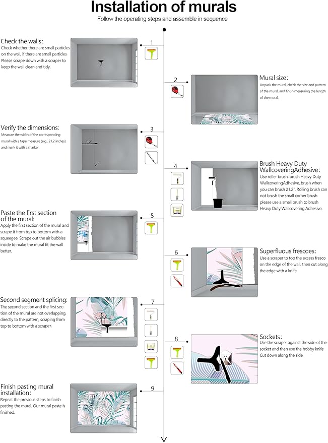 - Warm tip: This mural is not peel and stick, you need to buy your own glue, it is recommended to use Heavy Duty Wallcovering Adhesive.