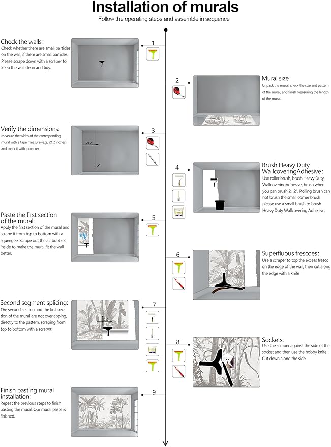 - Warm tip: This mural is not peel and stick, you need to buy your own glue, it is recommended to use Heavy Duty Wallcovering Adhesive.