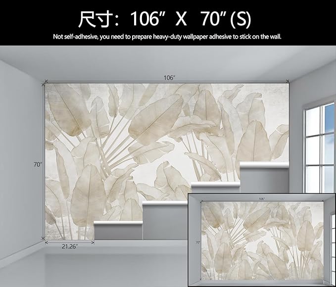 - Mural Size: The total size of this mural wallpaper is 106" x 70" / 270CM x 178CM (W x H), cut into 5 pieces, each measuring 21.26" x 70", for easy installation.