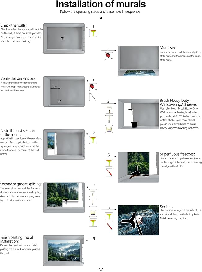 - Warm tip: This mural is not peel and stick, you need to buy your own glue, it is recommended to use Heavy Duty Wallcovering Adhesive.