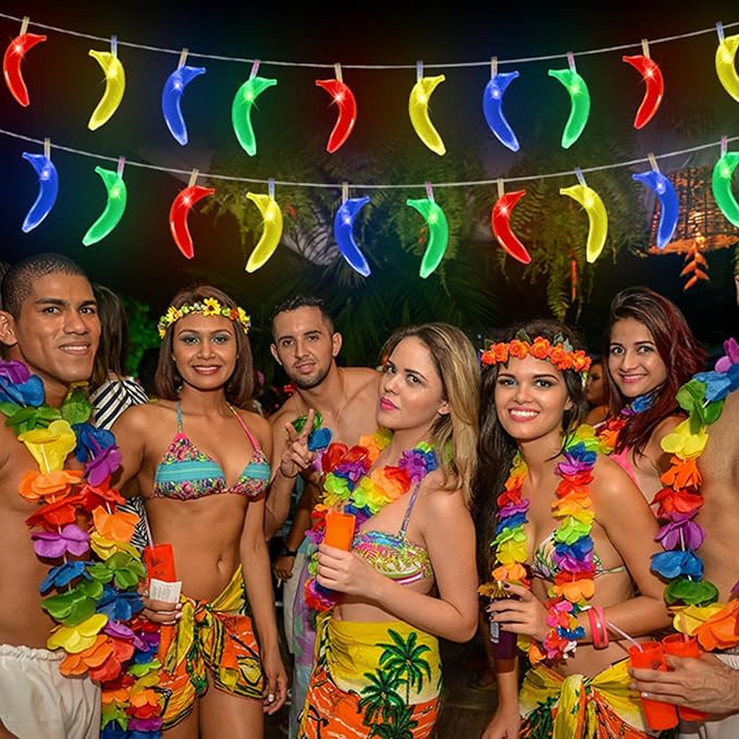 - ⛱Wide Application: Transform any space into a tropical getaway! Perfect for luaus, beach parties, backyard BBQs, or even cozy indoor settings like patios, gardens, gazebos, and bathrooms. No matter where you hang them, banana lights will transport you to a sunny, carefree seaside resort. From family gatherings to romantic evenings, banana lights will make every moment magical.