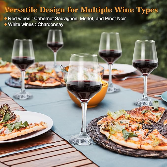 - 【Versatile Design for Multiple Wine Types】The versatile design of Glazvia goblets glassware makes them suitable for a variety of wines, including red wines like Cabernet Sauvignon, Merlot, and Pinot Noir, as well as white wines like Chardonnay.