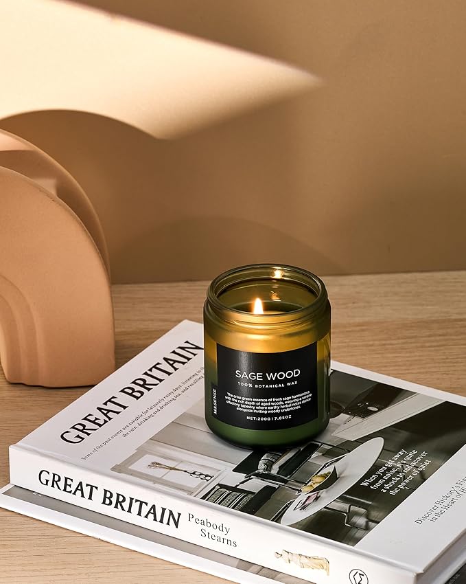 M&SENSE Sage Wood Scented Candle, 7.05oz 50 Hours Long Lasting Clean Non Toxic All Natural Soy Wax Candle for Relaxing & Stress Relief, 2 Wick Home Fragrance Gifts for Home Decor