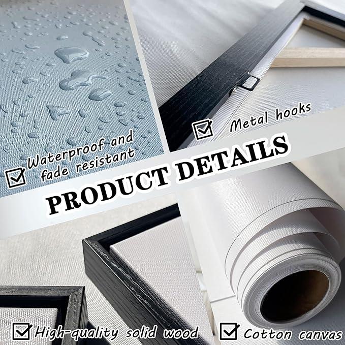 - Pictures for Living Room:Crafted from high-quality polyester canvas, it's waterproof, fade-resistant, and boasts a long service life. Stretched and framed on solid wooden frames for durability.