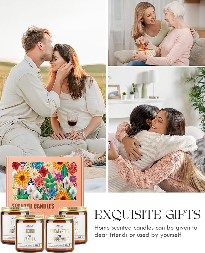 - Perfect for Gifting: No extra wrapping needed. Presented in an elegant gift box with beautifully crafted glass jar candles and gold foil labels, boasting an array of delightful scents that make this gift truly special.