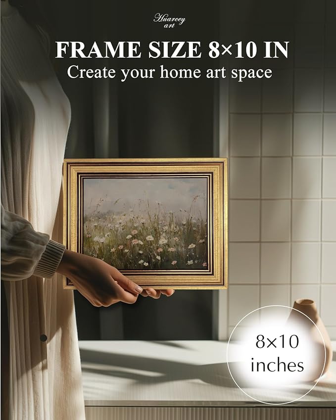 HUARCEY Gold Framed Vintage Wall Art for Living Room Wildflower Field Landscape Decor Aesthetic Mother Day Gift for Mom Oil Painting Flower Wall Print Floral Pictures Canvas Artwork Shelf Decor 8x10in