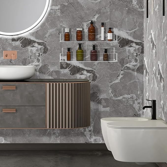 Acrylic Spice Rack Wall Mount-12 Inch, Clear Spice Shelf Storage Holder, 2 Pack Hanging Seasoning Rack Organizer for Cabinet Door, Cupboard or Wall Kitchen (Adhesive or Screw)