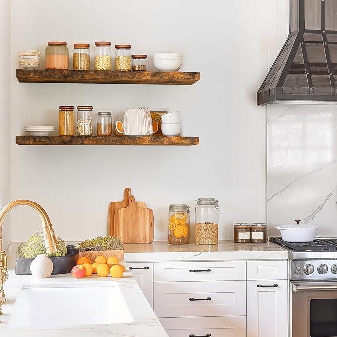 BAYKA Floating Shelves, 36" Wall Mounted Rustic Wood Shelves for Bathroom, Bedroom, Living Room, Kitchen, Office, Hanging Shelf for Books/Storage/Decor(Rustic Brown,Set of 2)
