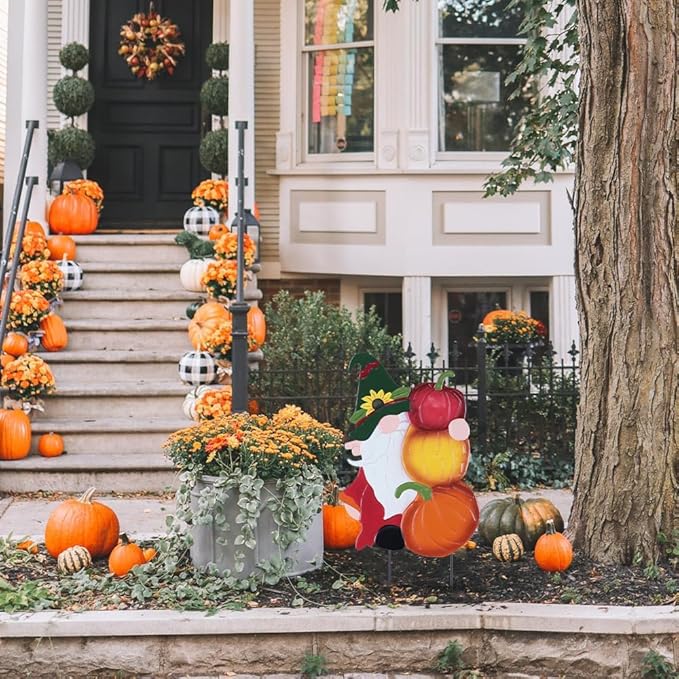 - 🍁【Versatile Outdoor Decor】Transform your outdoor spaces with the cozy charm of autumn! These whimsical fall yard stakes effortlessly add a festive touch to any landscape or patio. Perfect for lining walkways, accenting flower beds, or highlighting backyard nooks, their durable metal design withstands the elements while creating a warm, inviting atmosphere. Whether your style is rustic, modern, or cozy—these pumpkin gnome stakes bring autumn magic to every outdoor setting!