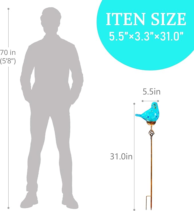 - HANDCRAFTED GLASS DURABLE: Our decorative plant stakes are made of beautiful and intricate color infused by hand blown glass, UV treated to prevent fading, and are designed with a striking metal tip for added elegance and resistance to outdoor elements; Our premium materials ensure our decorative stakes are able to withstand a wide range of outdoor weather conditions
