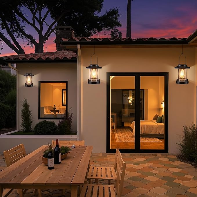 - HANGING SOLAR LANTERNS: Our solar-powered outdoor lanterns feature a modern classic design with 2700K warm white light, creating a cozy and inviting ambiance. Feature with hanging hooks and a secure safety buckle, these solar lights outdoor are easy to hang, carry, or place anywhere—perfect for camping, decorating gardens, or adding a stylish touch to your outdoor space.