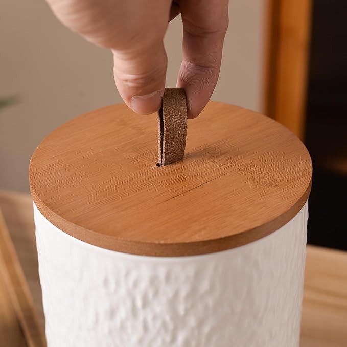 - Durable Ceramic with Airtight Seal - These canisters are made from durable ceramic that resists cracking and chipping. The bamboo lids feature silicone seals that lock in freshness, keeping your food or supplies fresh for a longer time.