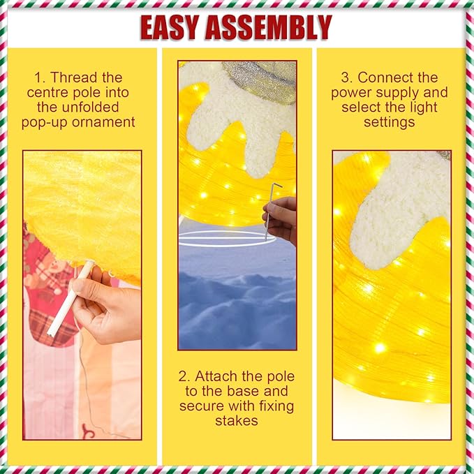 - Easy Setup: With collapsible frames, these ornaments are simple to assemble and disassemble, making them a convenient choice for your festive decor