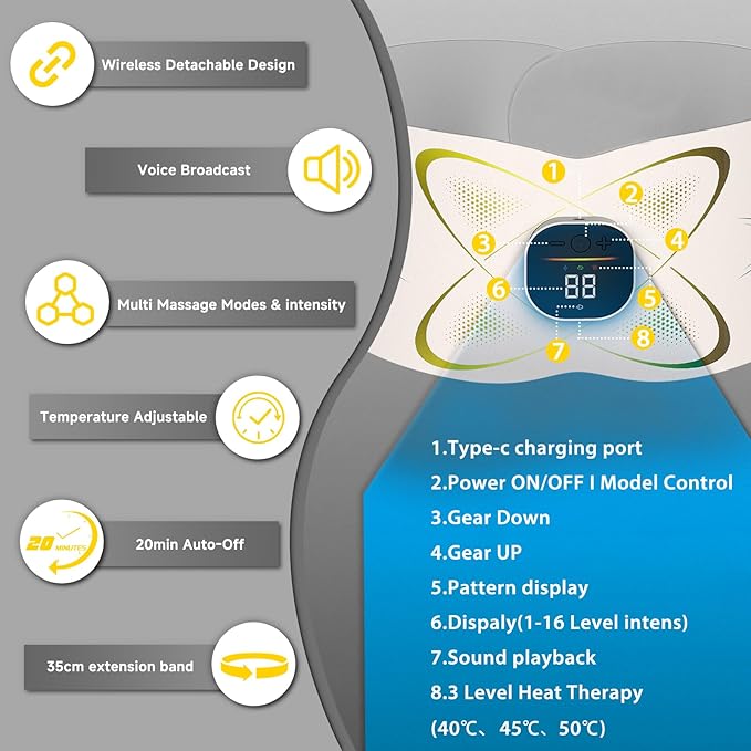 - Heated Comfort for Deep Relaxation: The Abs Stimulator abdominal belt comes with a heating pad that provides 3 different levels of heat, that soothes tense muscles and enhances blood circulation, providing a spa-like experience in the comfort of your home, Perfect for relieving back pain fatigue and stiffness (Direct contact the skin required and keeping the skin moist to ensure thebest massage effectiveness and heat conduction).